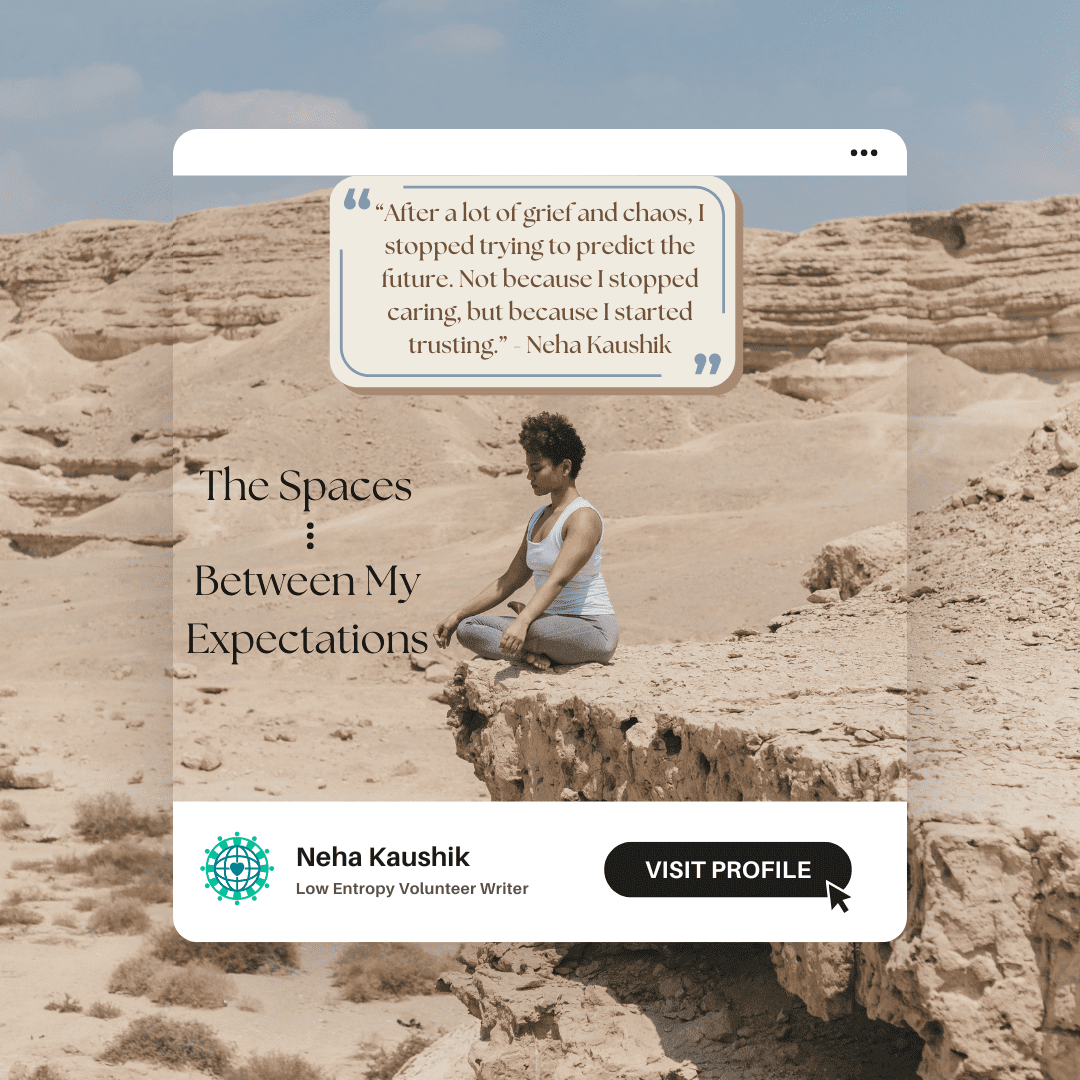 After a lot of grief and chaos, I stopped trying to predict the future. Not because I stopped caring, but because I started trusting. Trusting that the unknown is not to be feared. That a life rigidly planned is a life half-lived.